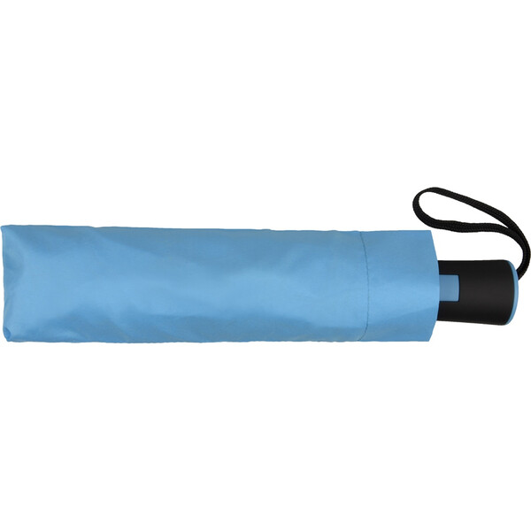 Зонт Wali трехсекционный 21" с автоматическим открытием. Зонт 21" с металлическим стержнем, спицами из стекловолокна и пластиковой ручкой с прорезиненным покрытием. В комплекте чехол. Полиэстер эпонж.Вы можете купить из наличия зонт Wali полуавтомат 21", голубой с вашим логотипом прямо сейчас, оформив доставку курьером