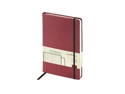 Блокнот формата A5 с 80 листами кремовой линованной бумаги (70 г/м²) с ленточкой и эластичной застежкой под цвет блокнота. Включает шариковую ручку серебристого цвета в держателе для ручки в корешке.