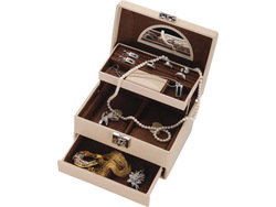 Удобная, компактная, функциональная многосекционная шкатулка для драгоценностей классической формы со встроенным зеркалом – прекрасный подарок к празднику, который понравится любой женщине.