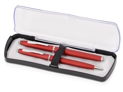 Набор включает в себя шариковую ручку и ручку роллер, выполненные в единой стилистике и цветовой гамме. Это прекрасная идея для подарка сотрудникам. В комплект входит футляр, на котором, как и на ручках, можно выполнить гравировку.
